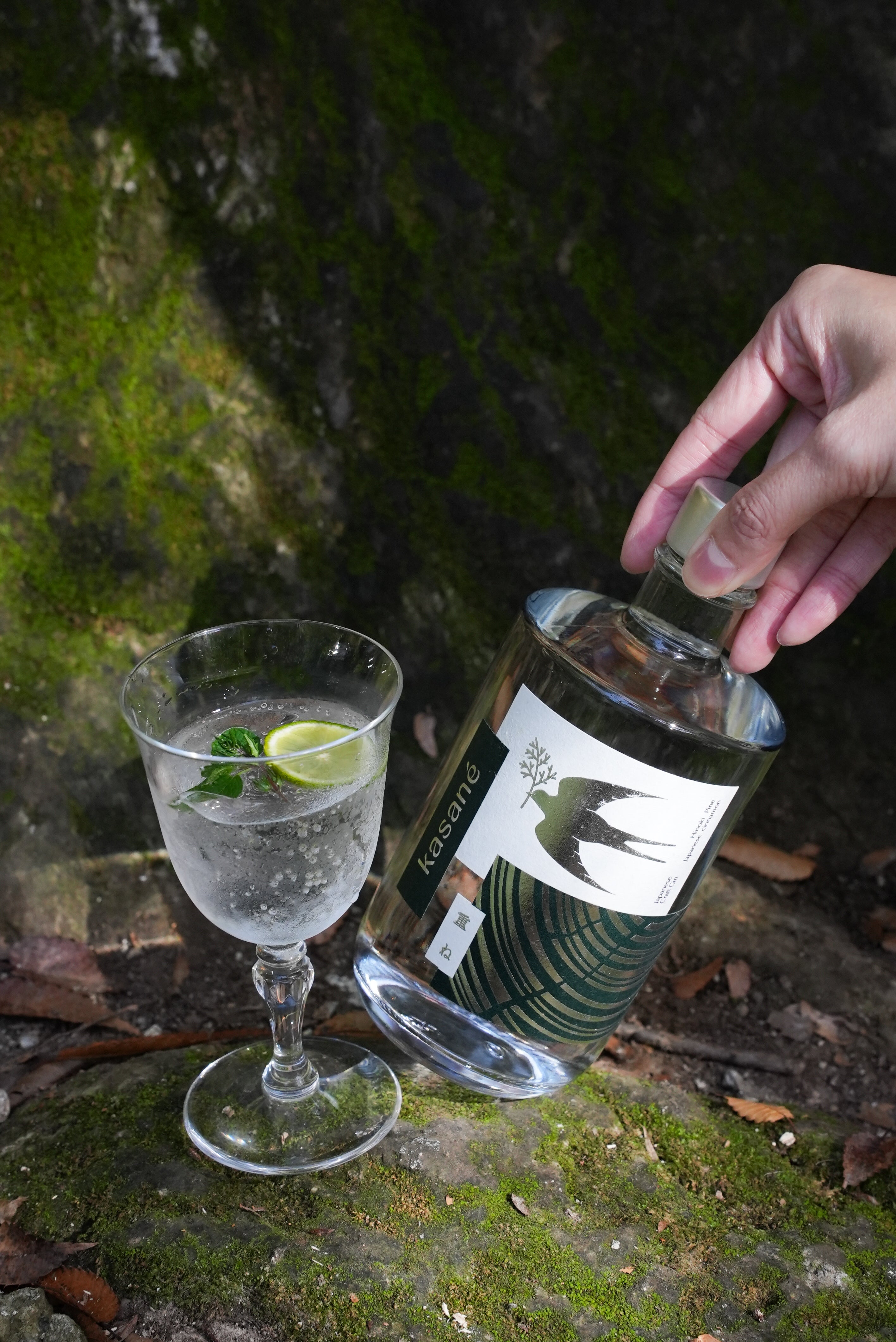 素材それぞれが持つ香り、風味、物語をあるバランスで重ね合わせたとき、一つひとつの個性がくっきりと浮かび上がり、“洗練”と“深み”が静かに交差する、新たな香りの世界が現れました。私たちの重ねることへの探求は、そこから始まりました。静謐な装丁に満ちるのは、やわらかく、渋く、どこか懐かしいクラフトジン。それぞれの声を聞き漏らさぬよう、深いリラクゼーションの中で、感覚を開いてお愉しみください。kasanéが誘うのは、枠組みに捉われず、心のままに自分を生きる、そのための空間です。